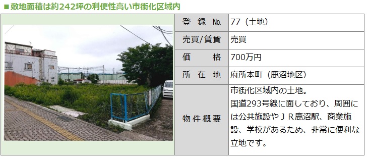 ![No.239西鹿沼町(農地付空き家)[1] No.239西鹿沼町(農地付空き家)[1]](../manage/contents/upload/682fce8204e47.jpg)
