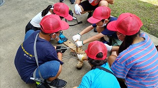 暑い中の活動だったので、お部屋でゆっくり休憩しお昼ご飯を食べた後、基地づくりとチャレンジ班活動を行います。